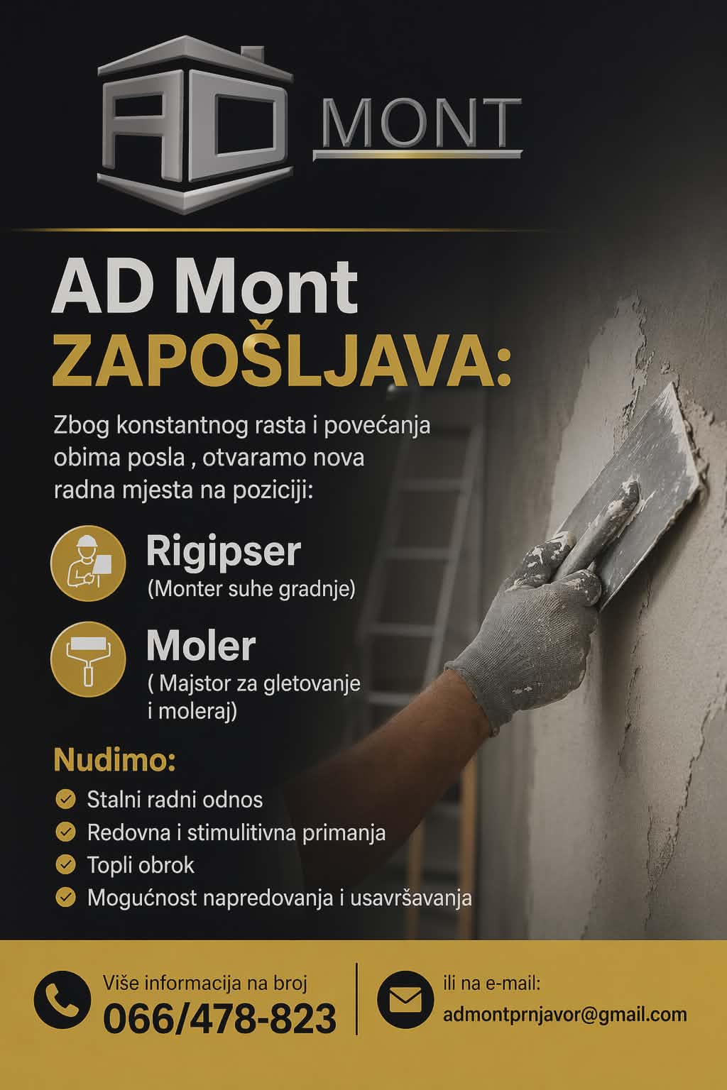 Ovo je dobra prilika za sve majstore iz oblasti građevine koji traže siguran posao i profesionalno okruženje.