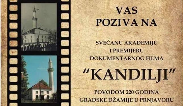 Islamska zajednica u Bosni i Hercegovini, Medžlis Islamske zajednice Prnjavor, Džemat Prnjavor Vas poziva na svečanu akademiju i premijeru dokumentarnog filma “Kandilji” povodom 220 godina gradske džamije u Prnjavoru.