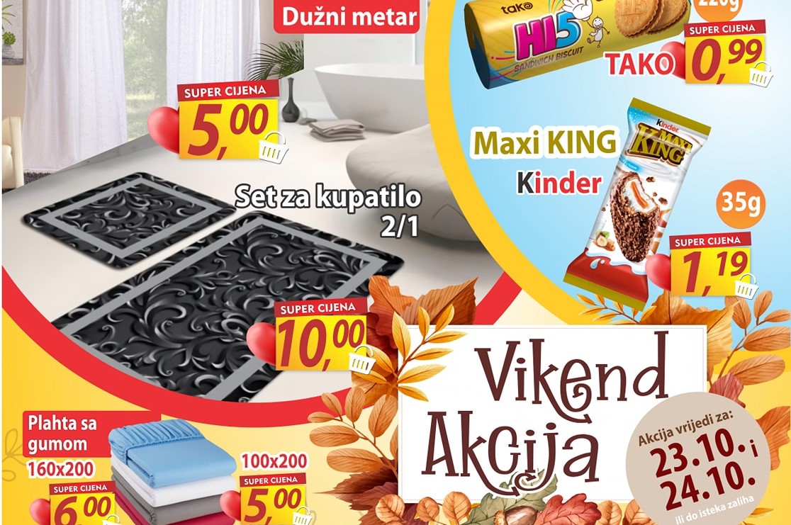 Fantastična vikend akcija je pred nama. Ponuda vrijedi za 23.10 i 24.10. Vidimo se u Fortuna marketima. Fortuna Marketi