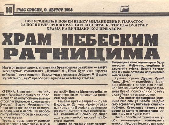 “Veljko me je još za života zadužio da se upravo na ovom mjestu sagradi hram. Zamislio je da do Vidovdana ove godine hram bude završen. Međutim, sudbina je drugačije htjela. Veljko poginu, ali mi koji smo ostali ispunićemo njegov zavjet”, izjavio je za Glas Srpske 1993. godine, protonamjesnik Radomir Maletić.