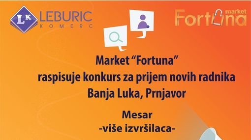 Market Fortuna raspisuje konkurs za prijem novih radnika – Banja Luka, Prnjavor – mesar-više izvršilaca.