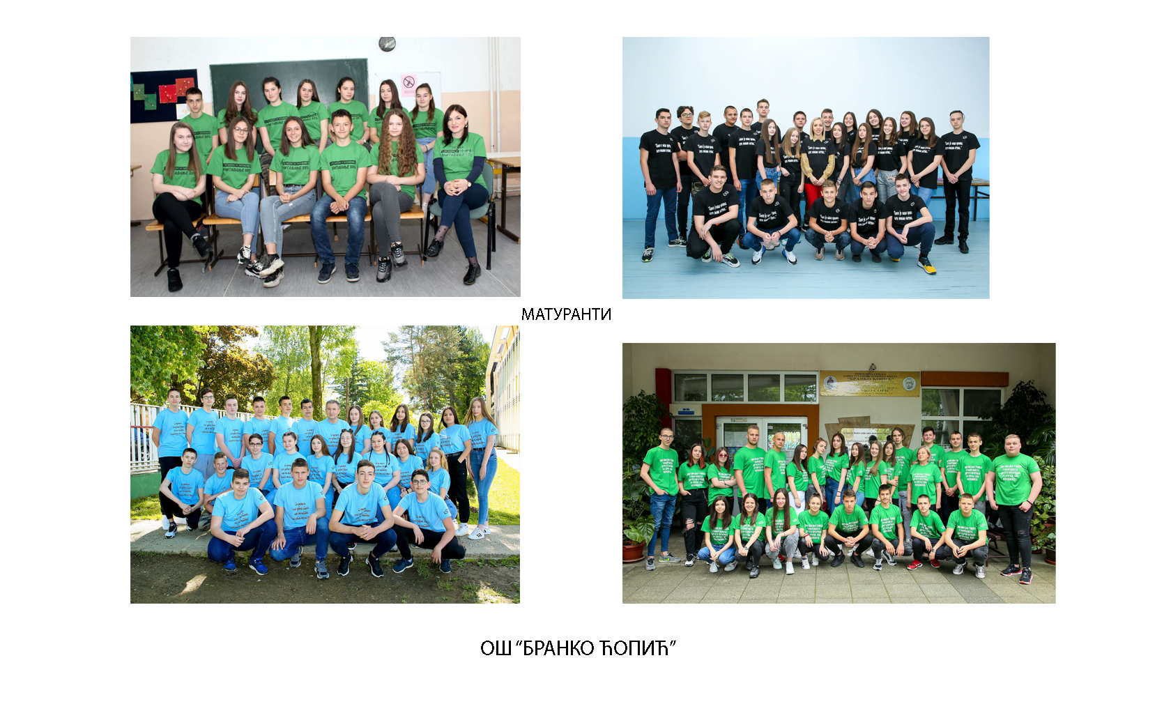 “Želimo da iz osnovne škole ponesete samo lijepa sjećanja i uspomene i da uspješno nastavite srednjoškolskim stazama. Vaši nastavnici i radnici škole ostaju vaš oslonac i u narednim životnim izazovima. Nadamo se radosnim susretima i vašim budućim uspjesima! Srećno, maturanti!” – poručuju iz OŠ “Branko Ćopić”.
