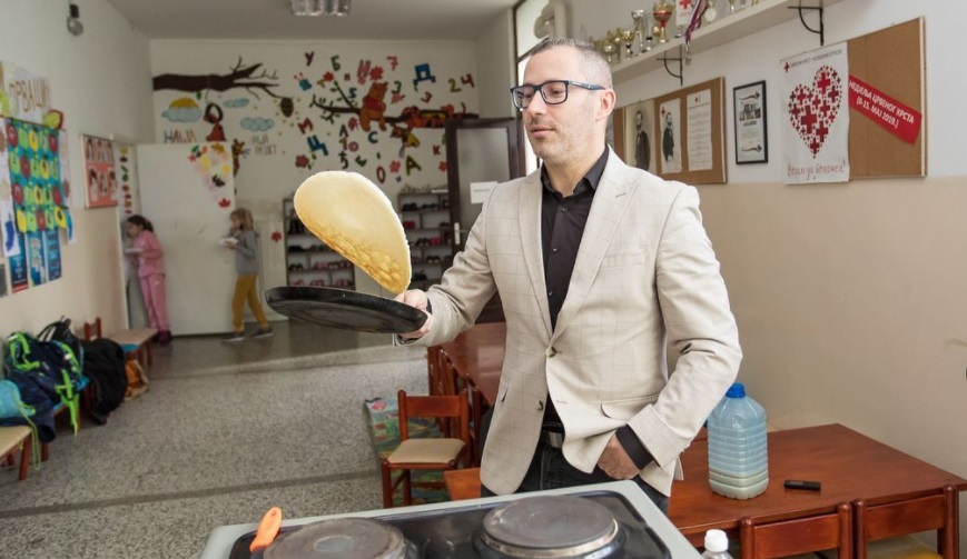 ▶️Vesna Šušak-Gajić, učiteljica koja vodi sekciju Domaćinstvo ističe da su djeca mnogo zainteresovana za ovu sekciju koja se održava svakog petka, te da joj prisustvuje sve više i više učenika. „Povodom 20. novembra međunarodng dana djeteta, došli smo na ideju pečenja palačinaka i odlučili da na ovaj način počastimo našu djecu.“