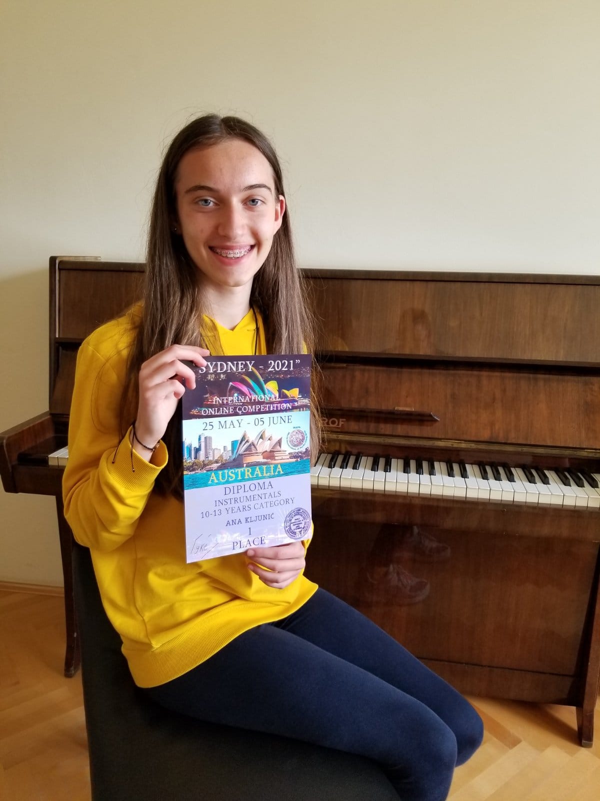 Odlične vijesti iz Australije! Učenica četvrtog razreda, Ana Kljunić, iz klase Tine Dabić, osvojila je PRVU NAGRADU na internacionalnom onlajn takmičenju “Sidnej 2021” koje je održano 28.05.2021. godine u Australiji. Čestitamo učenici i njenoj nastavnici! Muzička škola “Konstantin Babić” Prnjavor