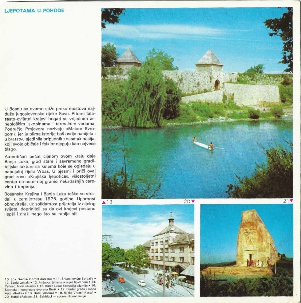 Ovaj izuzetni turistički prospekt ima 36 stranica i obuhvata sva mjesta u Bosni i Hercegovini sa kratkim uputstvo šta se nalazi na fotografijama.