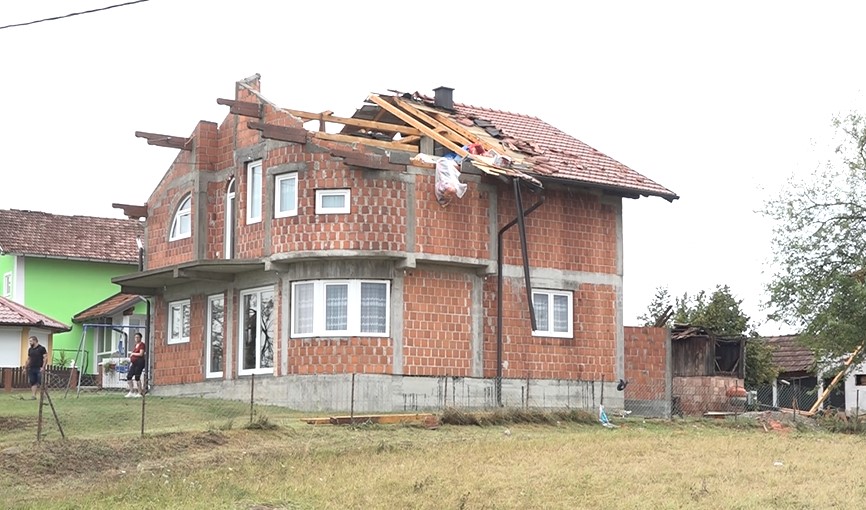 U samo nekoliko minuta porodica Vukelić iz Kalaba kod Prnjavora ostala je bez krova nad glavom. Olujni vjetar je korvnu konstrukciju bukvalno oduvao na obližnji livadu, a stradali su korovovi pomoćnih objekata, kao i stabla voćki u dvorištu. Srećom u novoizgrađenoj kući nije bilo nikoga dok je trajalo nevrijeme. Domaćin Mirosalv priča da je sa suprugom, dvoje male djece i trećim na putu na jesen trebao da se useli u novu kuću.