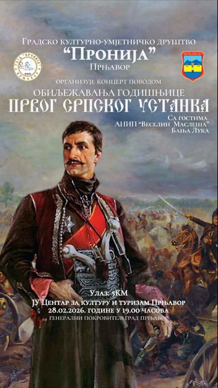 Градско културно-умјетничко друштво „Пронија“ Прњавор организује концерт поводом обиљежавања годишњице Првог српског устанка, уз учешће гостију АНИП „Веселин Маслеша“ из Бање Луке.