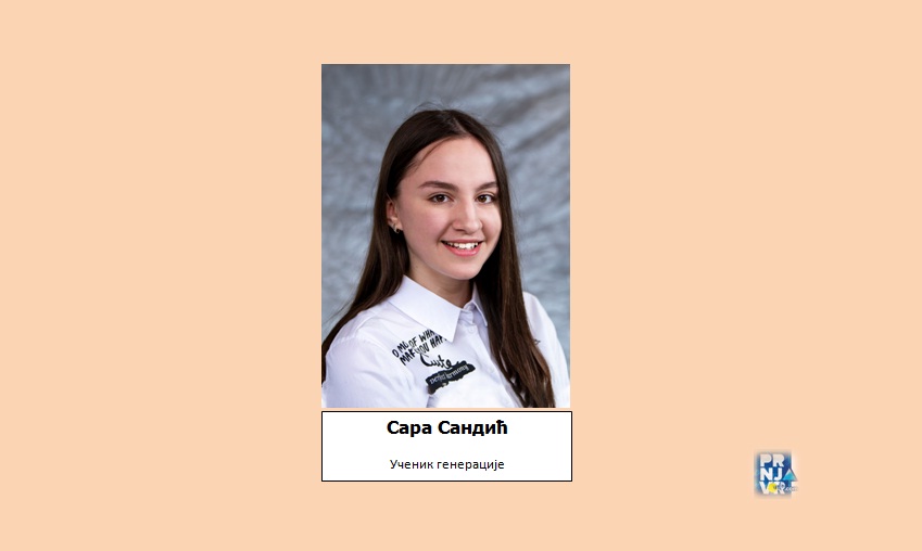 Za učenika generacije u JU OŠ “Miloš Crnjanski” iz Potočana, u školskoj 2021/22. godini, izabrana je Sara Sandić, učenica IX3 razreda.