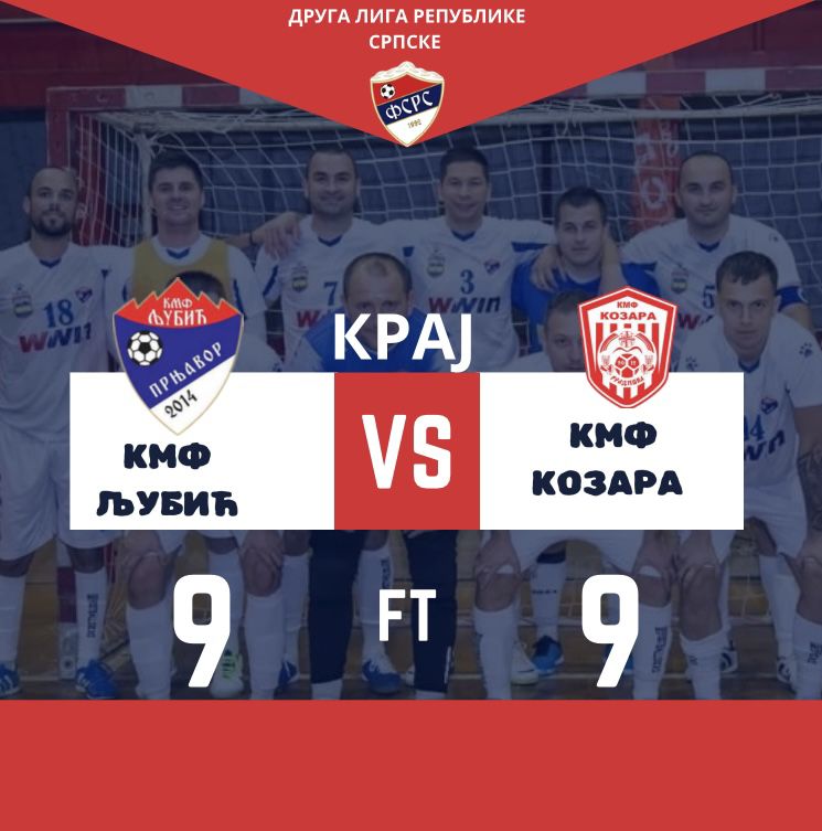 U Prnjavoru je odigrana izuzetno efikasna i uzbudljiva utakmica između KMF Ljubića i KMF Kozare, koja je završena neriješenim rezultatom 9:9, što je na kraju možda i najrealniji ishod susreta.