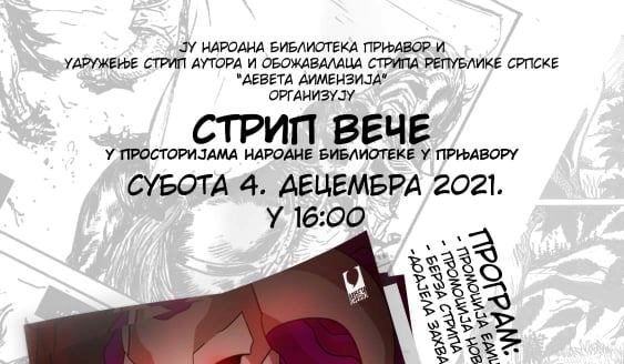 JU Narodna biblioteka Prnjavor i Udruženje strip autora i obožavalaca stripa Republike Srpske “Deveta dimenzija” organizuju STRIP VEČE. subota 4.decembar 2021 u 16:00 Prnjavorinfo.com