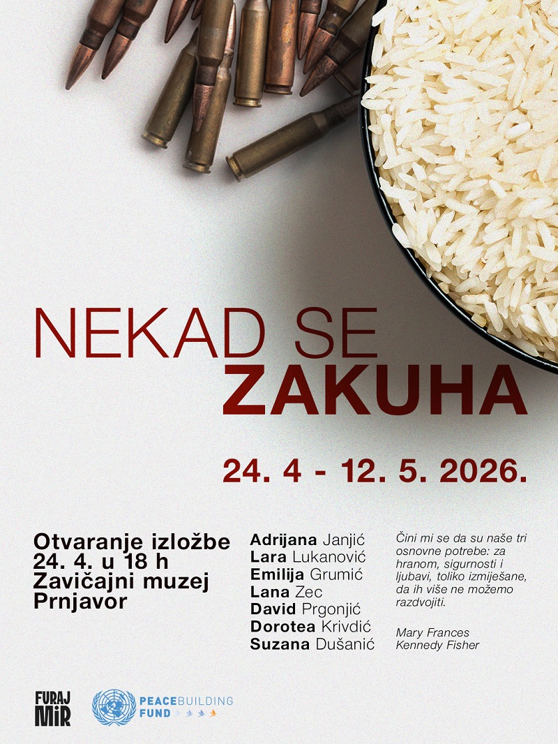 Izložba “Nekad se zakuha” nastala je kao istraživački i umjetnički rad mladih iz Prnjavora koji kroz svakodnevni motiv hrane promišljaju rat, raseljenost, preživljavanje i mir. Polazeći od jednostavnih namirnica – riže, makarona i krompira – ova izložba otvara prostor za razgovor o iskustvima raseljenih lica i izbjeglica čiji su životi tokom rata (1992–1995) bili naglo preokrenuti.